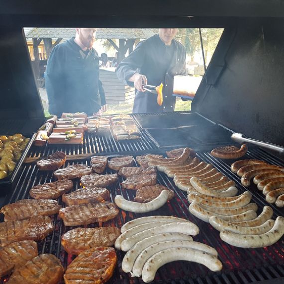 Unser BBQ-XXL-Stahlgrill hat eine Grillfläche von knapp 4 m². Einer echten XXL-Grillparty für 30 bis 1.500 Personen steht also nichts im Weg. Feiern Sie unbeschwert und genießen Sie das Fest als seien Sie Ihr eigener Gast. Ganz nach Ihren Wünschen wird unser Grill mit Ihren ausgewählten kulinarischen Spezialitäten bestückt.