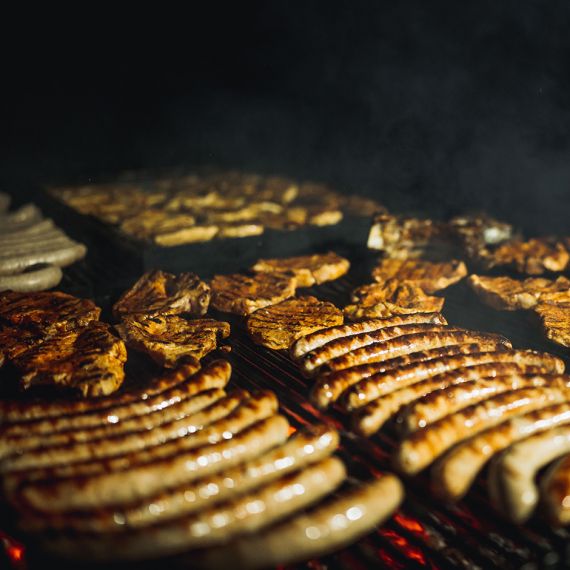 Grillen hat seine Klassiker, und diese celebrieren wir gemeinsam auf unserem BBQ-XXL-Grill. Für jede Vorliebe bieten wir die passenden Grill-Produkte wie Rumpsteak, Ribeye-Steak, Schweine-Kammsteak, Pulled Pork, Spare Ribs, Bratwurst (verschiedene Sorten), Lammspieße, Putenfilets un Hähnchenbrust, Rinderbrust und Roastbeef.