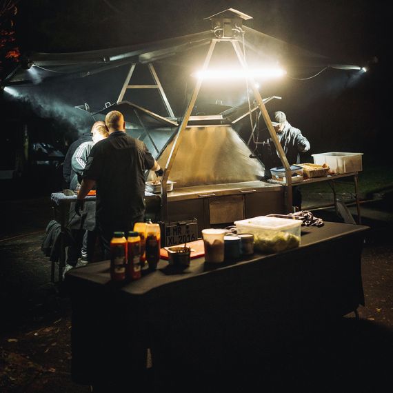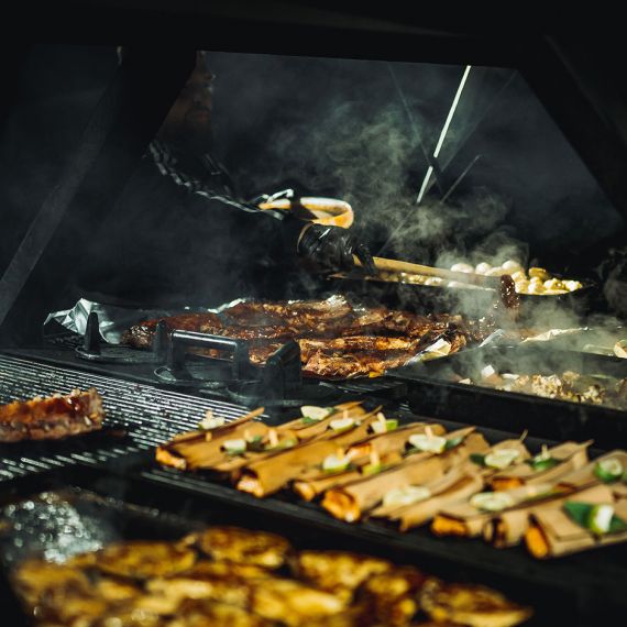 Unser BBQ-XXL-Stahlgrill hat eine Grillfläche von knapp 4 m². Einer echten XXL-Grillparty für 30 bis 1.500 Personen steht also nichts im Weg. Feiern Sie unbeschwert und genießen Sie das Fest als seien Sie Ihr eigener Gast. Ganz nach Ihren Wünschen wird unser Grill mit Ihren ausgewählten kulinarischen Spezialitäten bestückt.